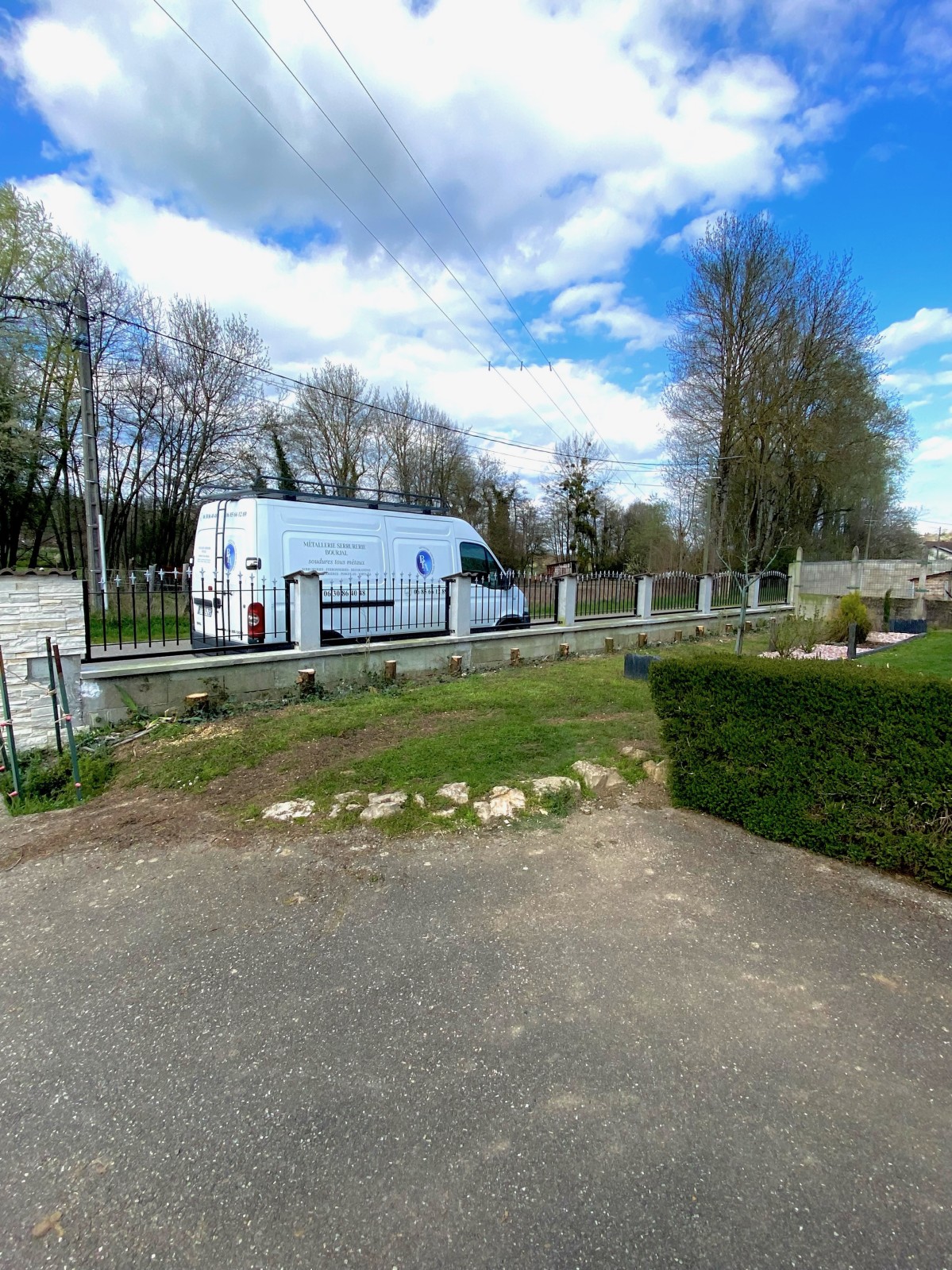 Voici un joli chantier finalisé avec de belles barrières de clôture sur mesure entièrement en acier avec des fer de lances sur la partie haute en gris.