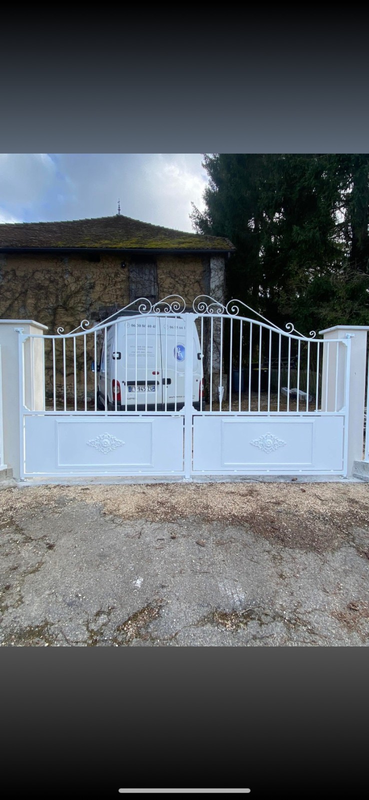 Nous avons aussi fabriqué un portail en acier sur mesure dans le même style mais avec quand même plus de détail.