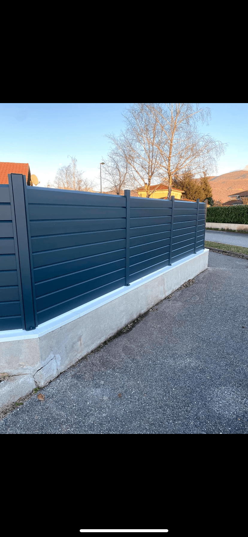 Une fois les couvertines installer nous avons pus installer les clôtures en aluminium style persiennes sur platines, la couleur a était choisie par les clients et donc gris anthracite.